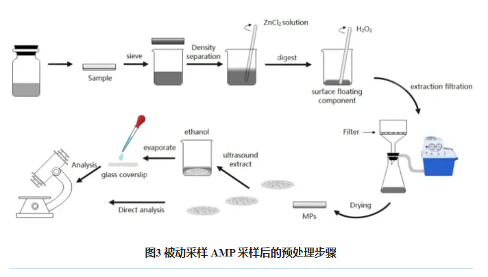 制备大气样品以去除可能干扰测量的外部和生物材料,并提高分析的准确性,包括几个阶段,例如筛分、有机物消化、密度分离、过滤和空气干燥。当样品中的有机物含量较高并干扰检测时,通常采用湿式过氧化 (WPO)、酸处理 和碱处理将其去除。由于在碱和酸处理过程中可能会损害塑料的物理性能,这可能会导致最终分析结果出现偏差。已经证明,湿式过氧化 (WPO) 方法可以分解生物材料并消解有机物,这在大气样品中是有效的和常用的。例如,大气中的微塑料颗粒已经用过氧化氢 (H2O2) 溶液或次氯酸钠 (NaClO) 进行有机去除 。由于H2O2方法所需的消解时间较长,Fenton 试剂(H2O2和亚铁离子Fe2+)已被推荐为在较短时间内分解有机物的有效方法,并可能成为未来MPS研究中溶解有机物的流行方法。